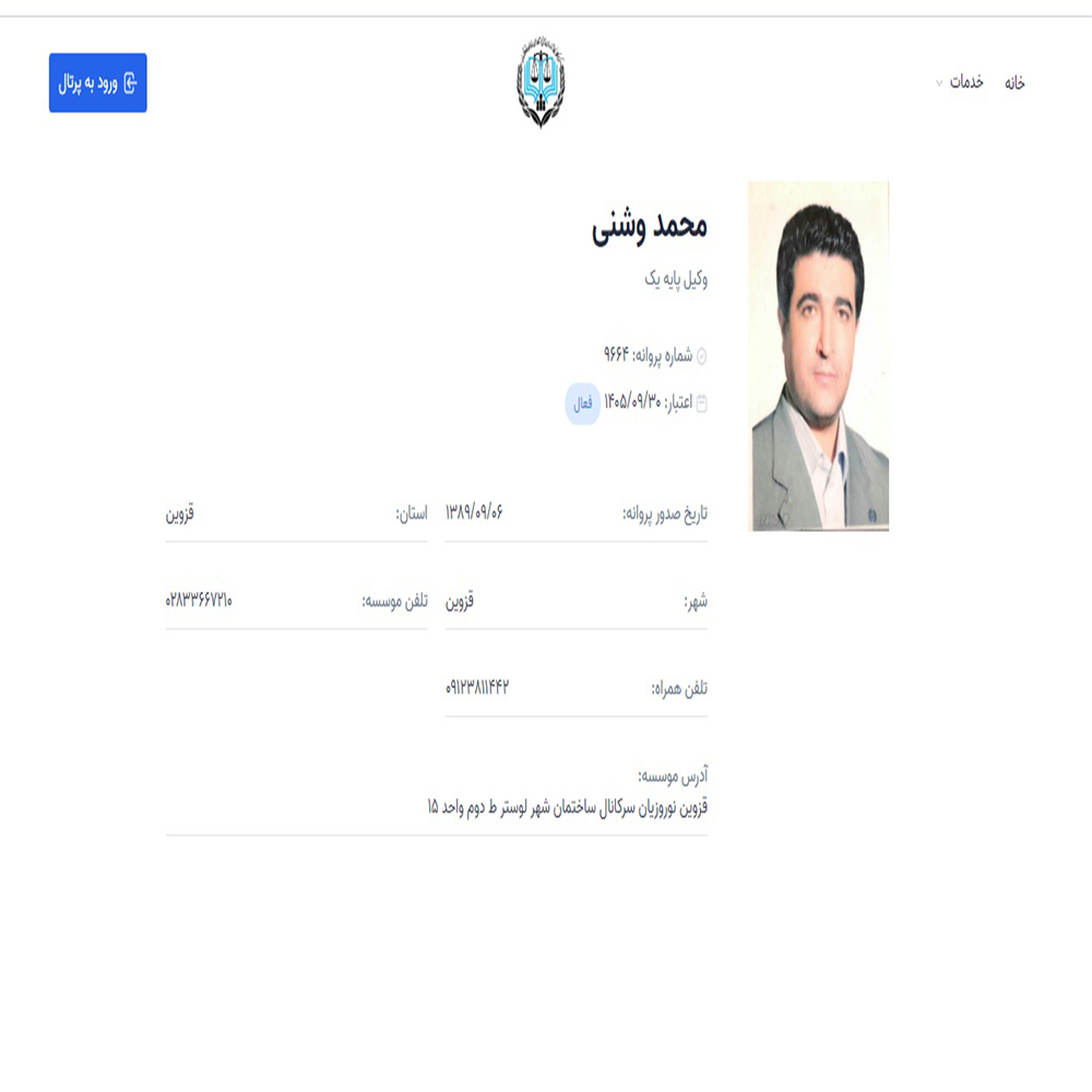 وکیل پایه یک دادگستریمحمد وشنی کارشناس ارشد حقوق خصوصی و مدرس دانشگاه مشاور حقوقی شهرداری قزوین در سنوات 1380 تا 1385، مشاور حقوقی شهرداری محمودآباد نمونه در سنوات ۸۵ تا 87 مشاور حقوقی دوره سوم شورای اسلامی شهر الوند ، مشاور حقوقی بانک کشاورزی استان قزوین ، شرکتهای پوشینه بافت ، پلاستیکلوکس ، هنرورز و …. دارای قریب 23 سال سابقه فعالیت در امور حقوقی و وکالت دانش آموخته ممتاز دانشگاه دارای تالیفات و مقالات علمی در جراید کثیرالانتشار