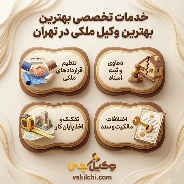 - ماهرترین وکلای ملکی در تهران با ارائه راه حل های قانونی مرتبط با موضوع پرونده موجب تسریع روند پرونده در دادگاه خواهد شد.